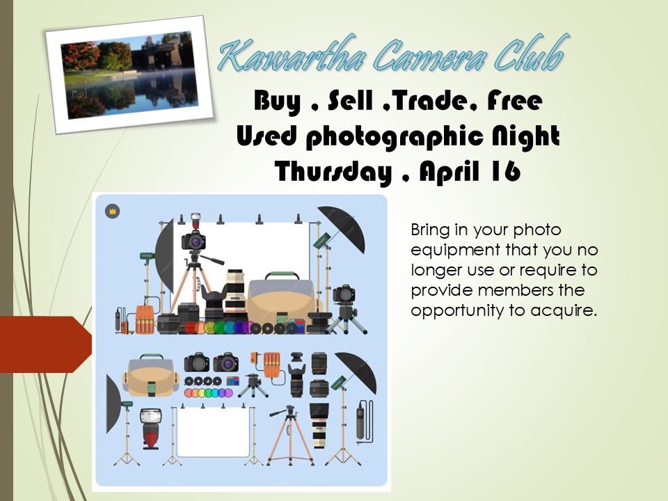 - members are requested to bring photographic equipment to sell / exchange or supply for free , among members